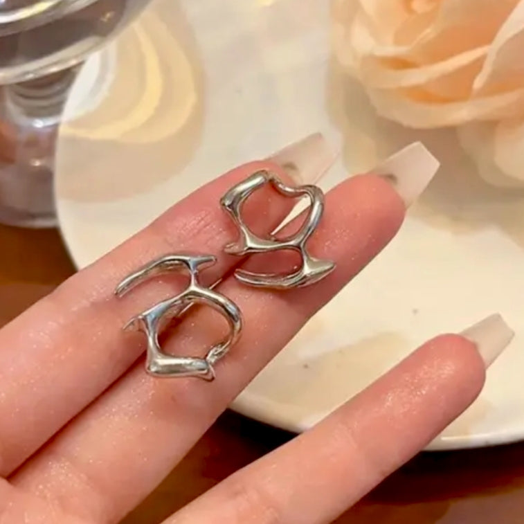 Close-up of an ear wearing a silver earring
